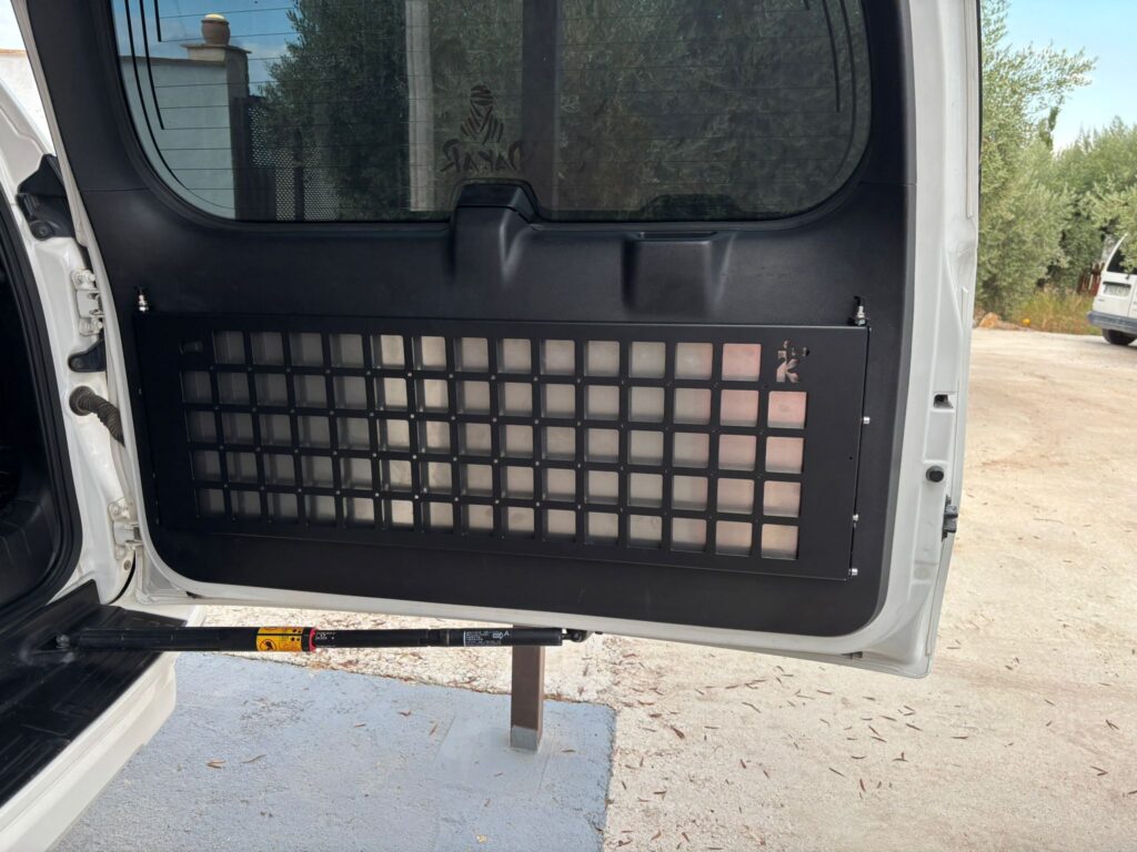 El panel molle admite fácil acceso a todo tipo de accesorios que quedan sujetos firmemente con Velcro o tornillos M6 y está rematado con pintura electrostática texturizada de 90 micras.