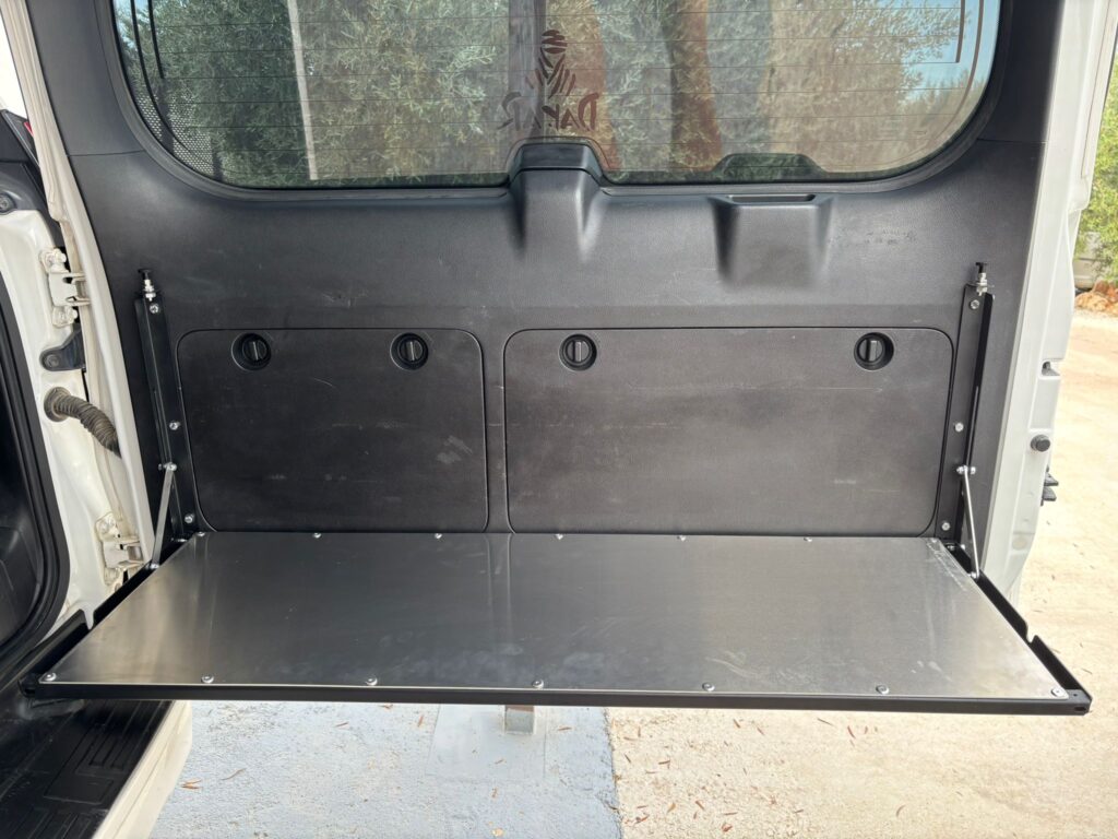Nacida a partir de la tirada conmemorativa, hemos incluido en nuestro catálogo una mesa plegable para el portón, ahora con el nuevo panel molle. Fabricada en acero pintado al povo, tirantas de inox y aluminio para la encimera. Todo en 2mm de grosor, con un resultado de 6,8kg permite afirmar que probablemente sea la mesa más sólida del mercado.